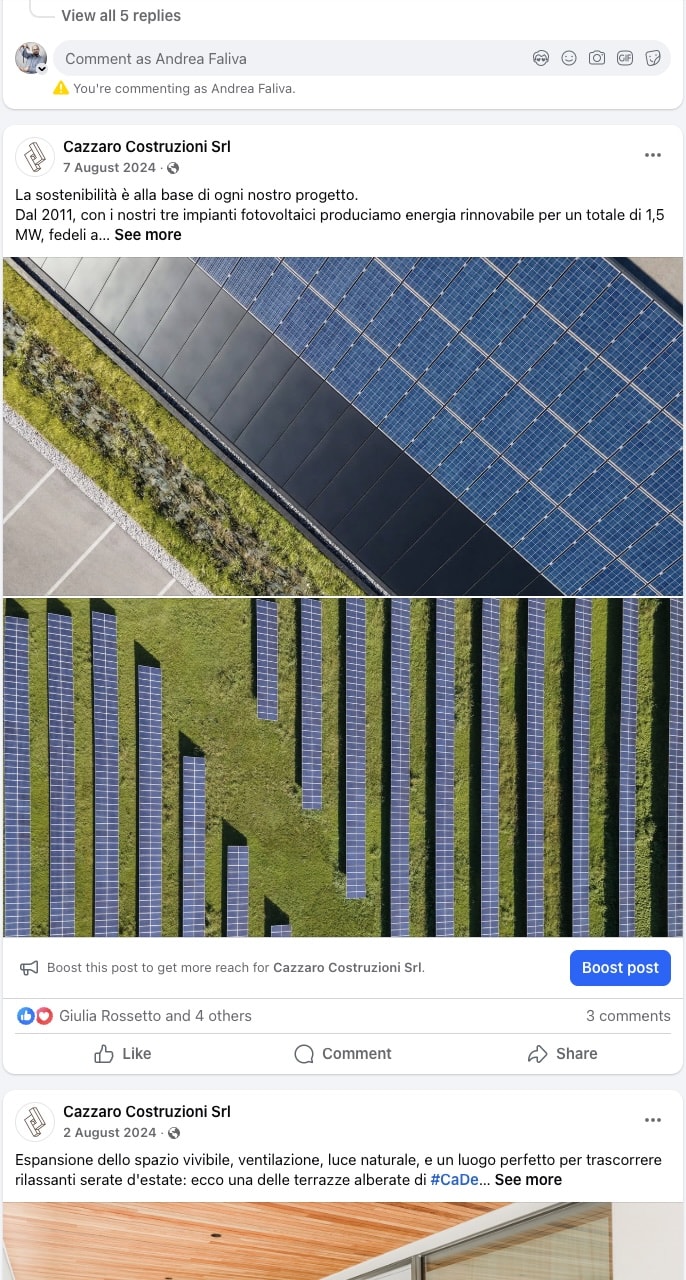 Cazzaro Costruzioni’s social communication focuses on creating content that clearly expresses the brand’s values: quality, innovation and attention to detail. We have developed an effective and authentic storytelling strategy, through customised content and the sharing of projects realised on the territory. This approach has enabled the company to strengthen the bond with customers and partners, creating an ongoing dialogue based on trust.