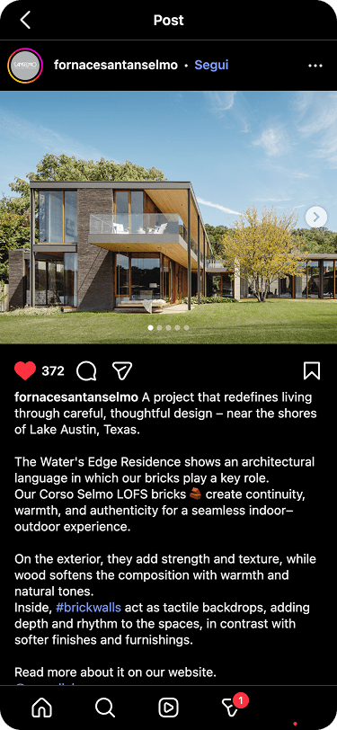 Fornace Sant’Anselmo is the reference company for terracotta products and designer bricks. Our intervention supported the company in a process of reorganisation of brand communication through the main digital channels – in particular the website and social platforms – mainly targeting technicians and architects on the international scene.