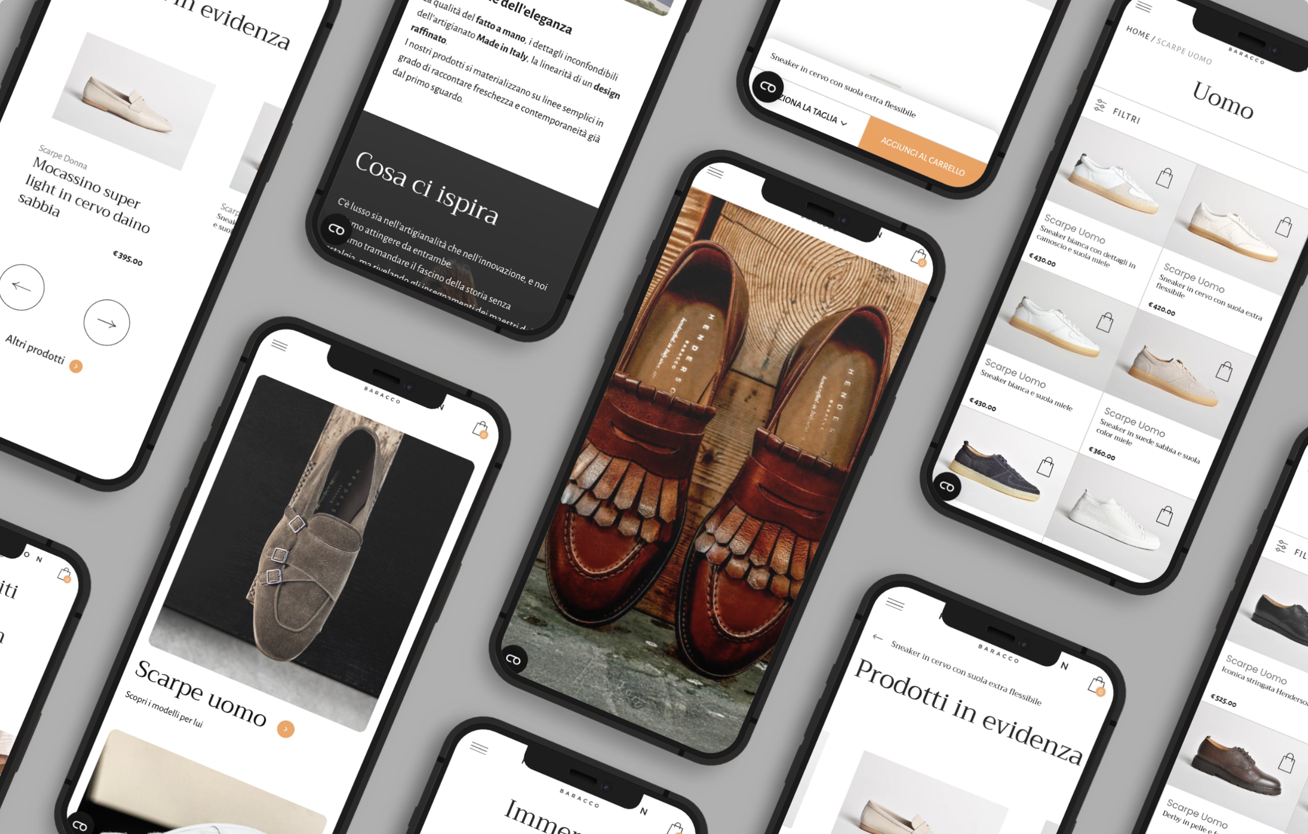 Utilizziamo un frontend basato su Vue.js e selezioniamo il backend in base alle scelte del cliente, tra WordPress/Woocommerce, Shopify, Magento, BigCommerce o altri Cms.